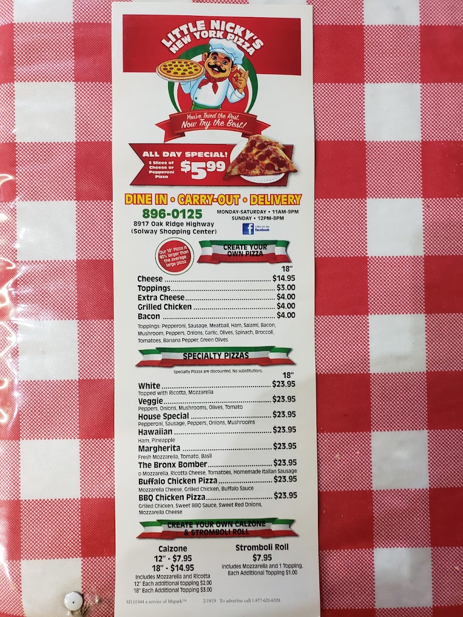 At Little Nicky's New York Pizza, located at 8917 Oak Ridge Hwy in Knoxville, TN, the menu offers a wide variety of mouth-watering options, perfect for satisfying any craving. Starting with the appetizers, guests can enjoy Garlic Bread with Mozzarella for $4.99, or try the savory Eggplant Rollatini Rolls (3 pieces) at $6.99. If you're in the mood for something more bite-sized, the Garlic Knots (12 pieces) are a great choice for just $4.99, while the classic Garlic Bread is available for $3.99.
